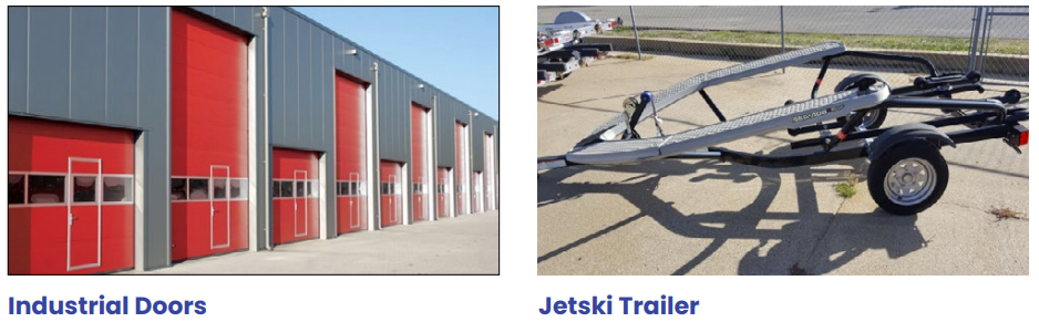 Horizontal Bifold door –wood cladded Rolling shutter Horizontal Bifold door – glass Automatic garage door High Speed Door